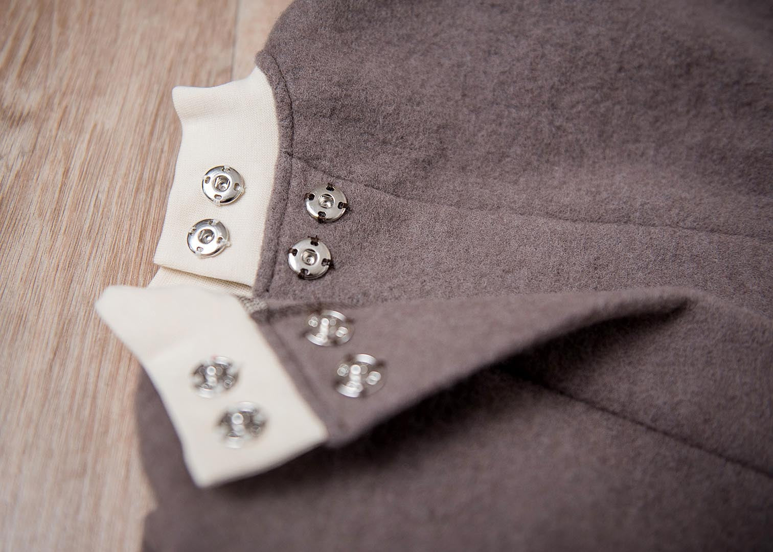• Vier Druckknöpfe am Hals → leicht zu öffnen, leicht zu schließen